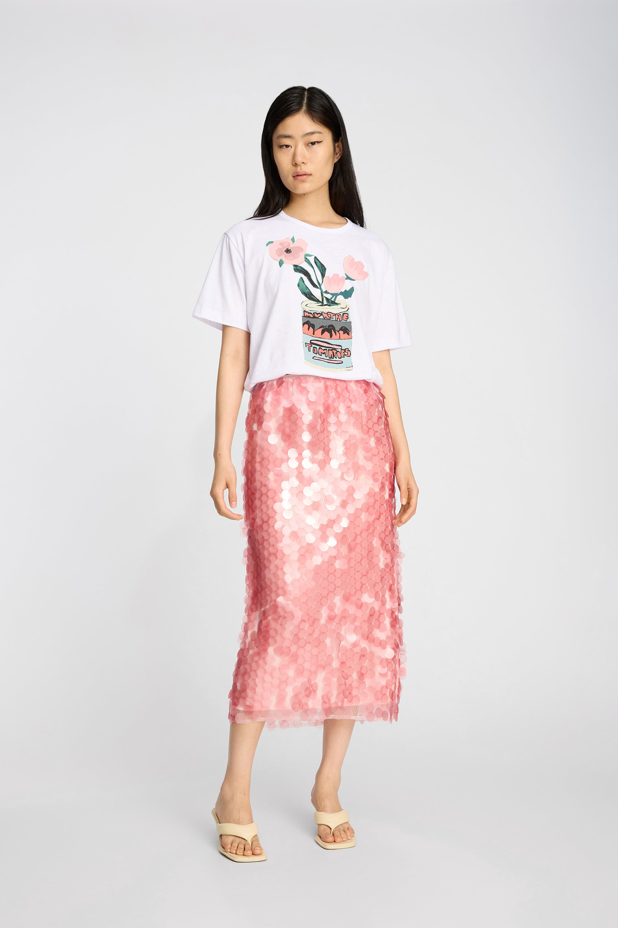 T-Shirt mit Grafikprint und Blumenmotiv. Normale Passform, klassischer Rundhalsausschnitt und kurze Ärmel.