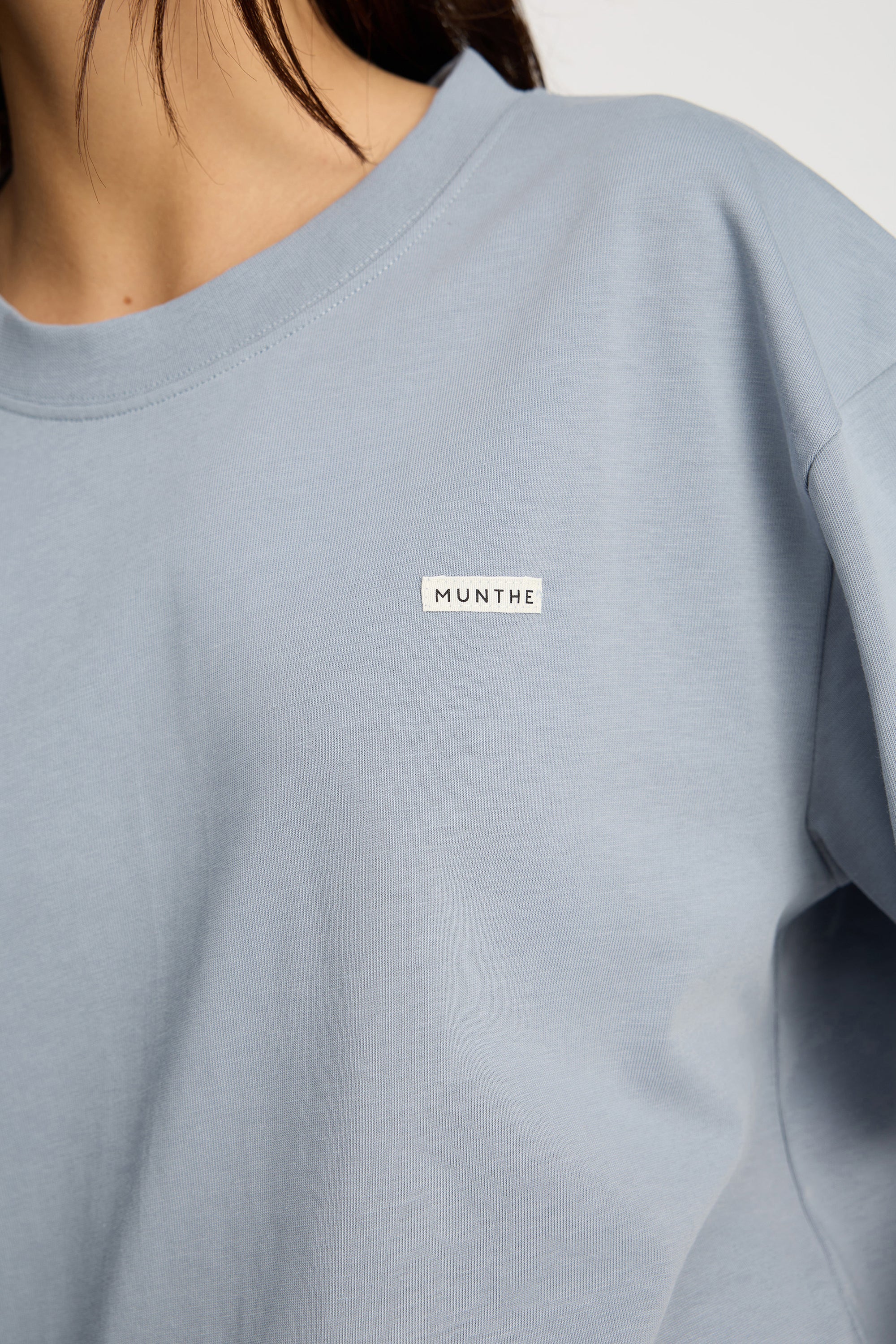 T-Shirt mit verkürzter Passform und dezentem MUNTHE-Logo. Mit Rundhalsausschnitt, kurzen Ärmeln und lockerer Passform.