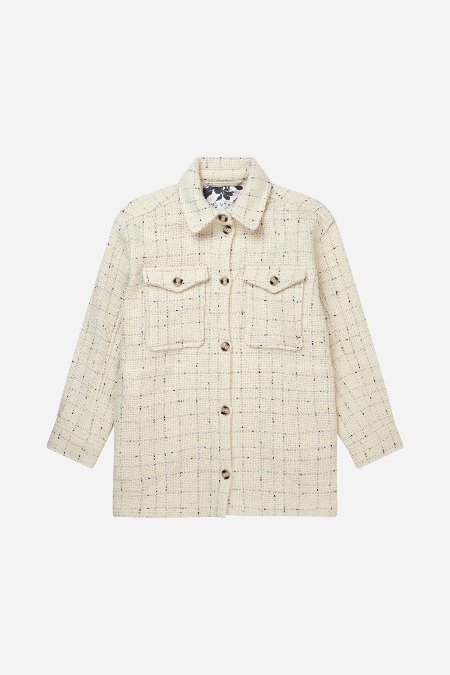 Eine vielseitige Hemdjacke mit einem entspannten Schnitt. Ideal als äußere oder mittlere Schicht. Die Hemdjacke hat zwei Taschen auf der Vorderseite und einen Knopfverschluss. Erhältlich in der Farbe Creme.