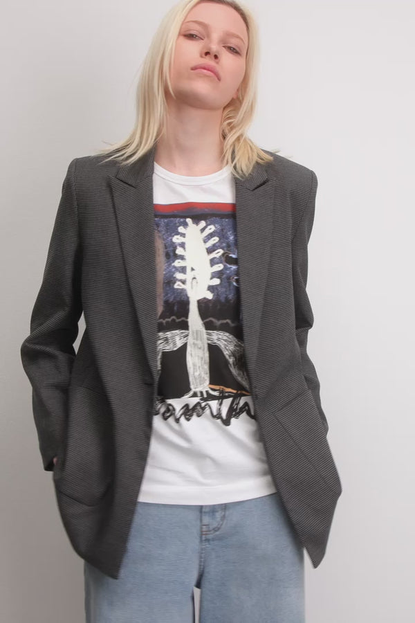 T-Shirt mit schönem MUNTHE Art-Print. Das T-Shirt hat kurze Ärmel, einen Rundhalsausschnitt und besteht aus 100% Bio-Baumwolle.