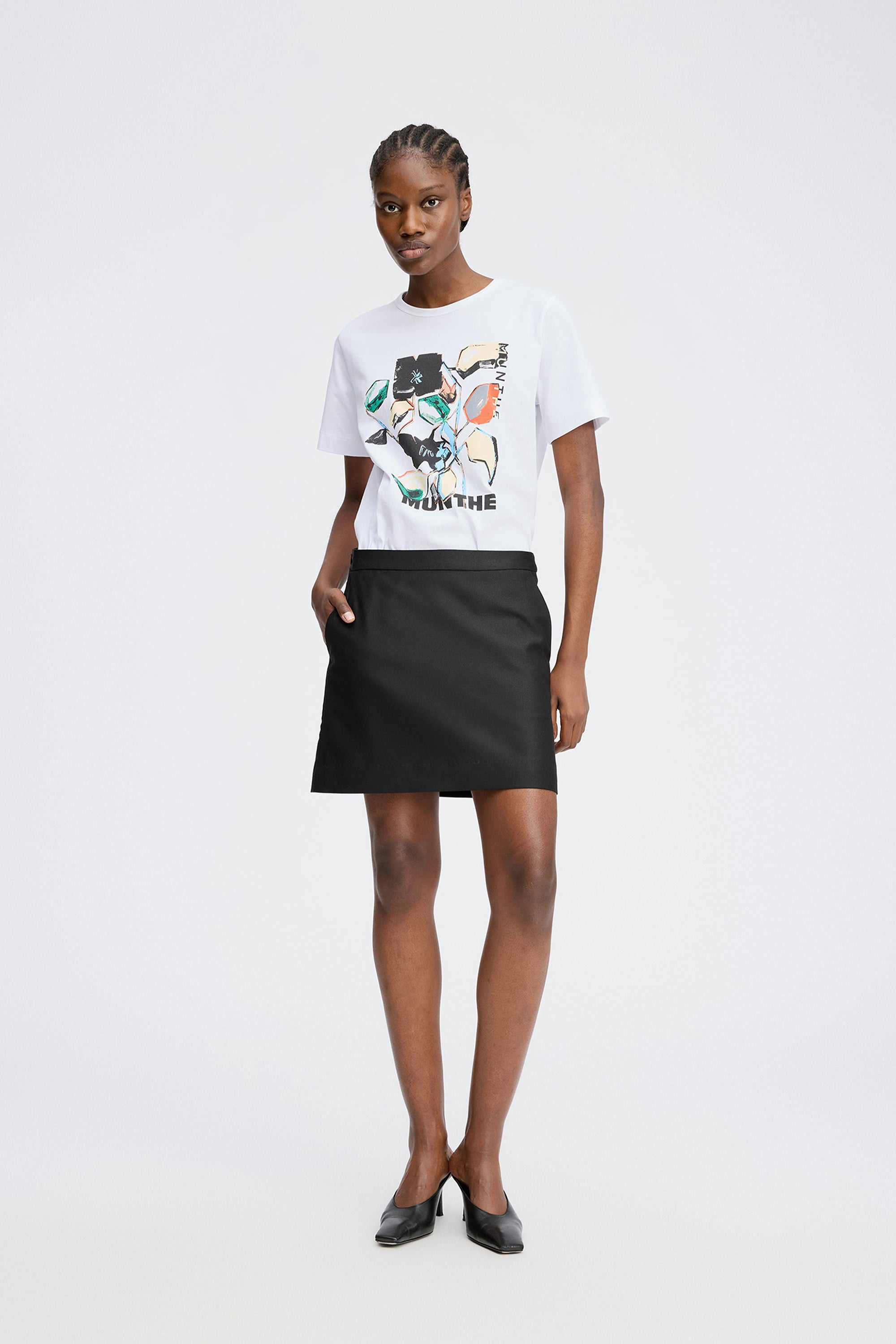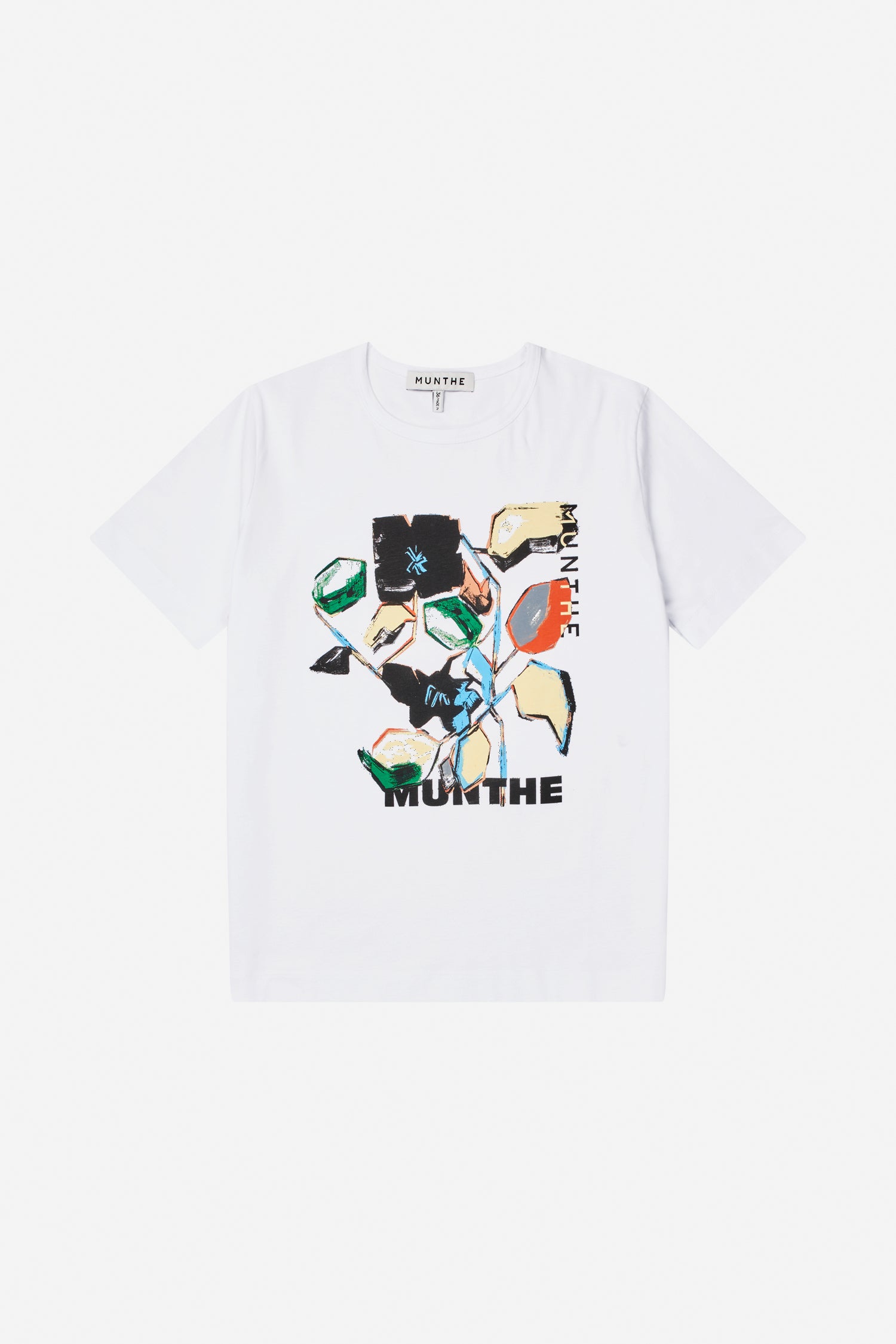 T-Shirt mit schönem MUNTHE-Kunstprint. Dieses T-Shirt hat ein dezentes Logo auf dem Ärmel.