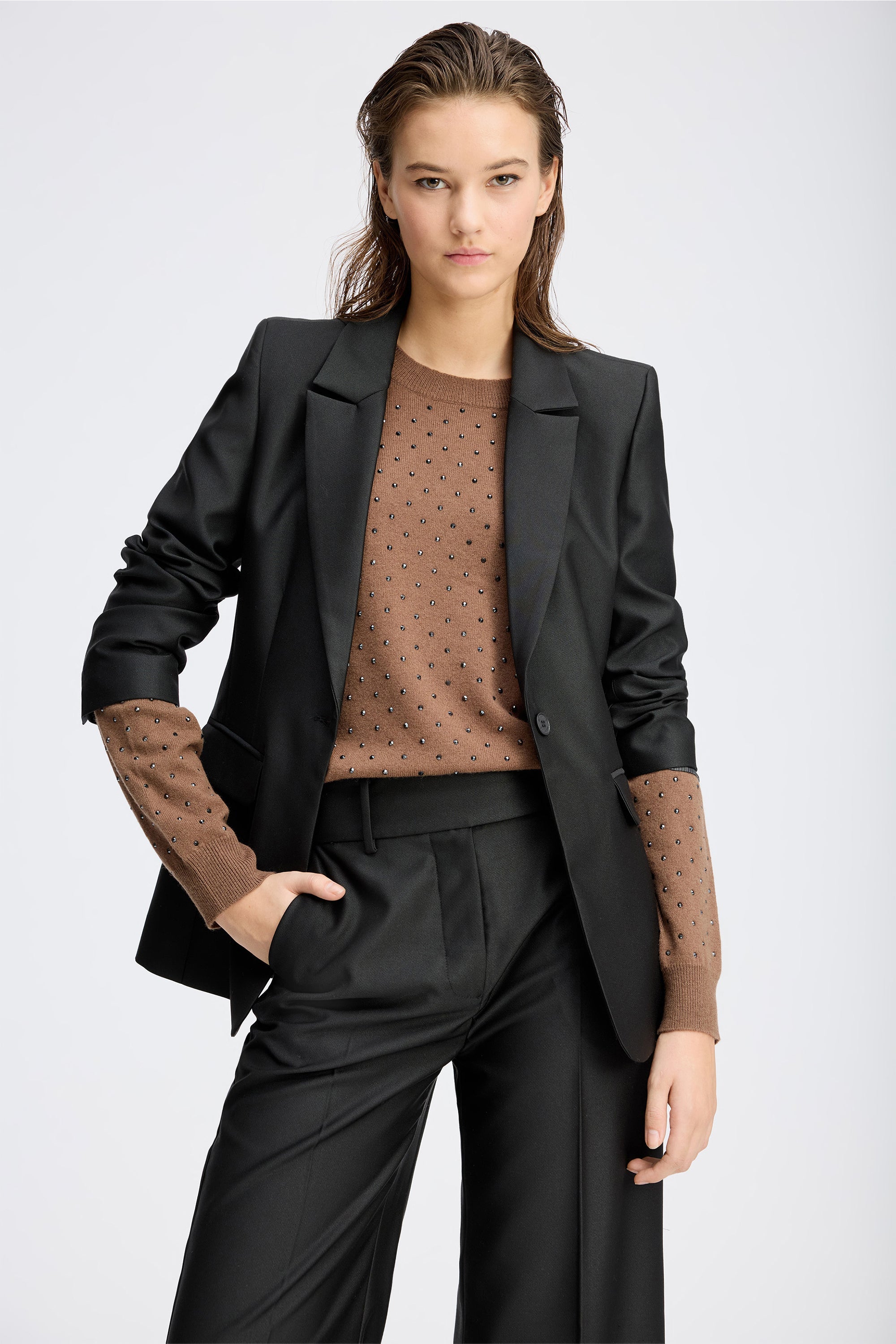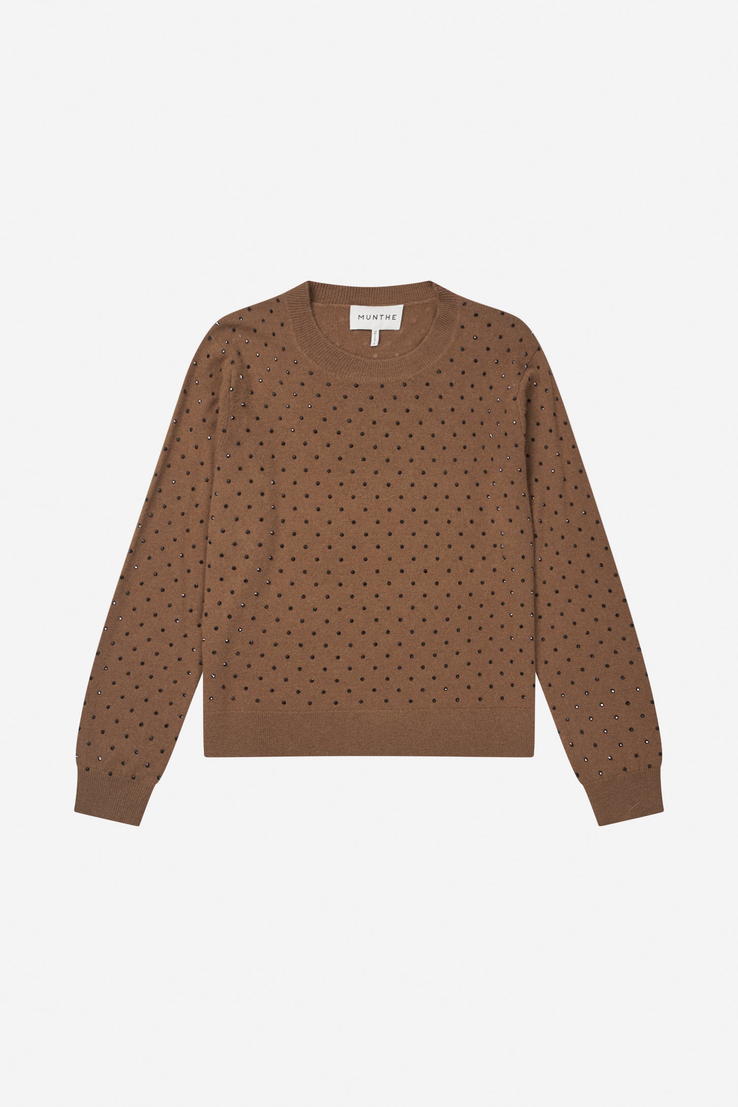 Schöner, weicher Strickpullover mit eleganten silberfarbenen Nieten. Der Pullover hat einen klassischen Rundhalsausschnitt und lange Ärmel mit gerippten Bündchen.