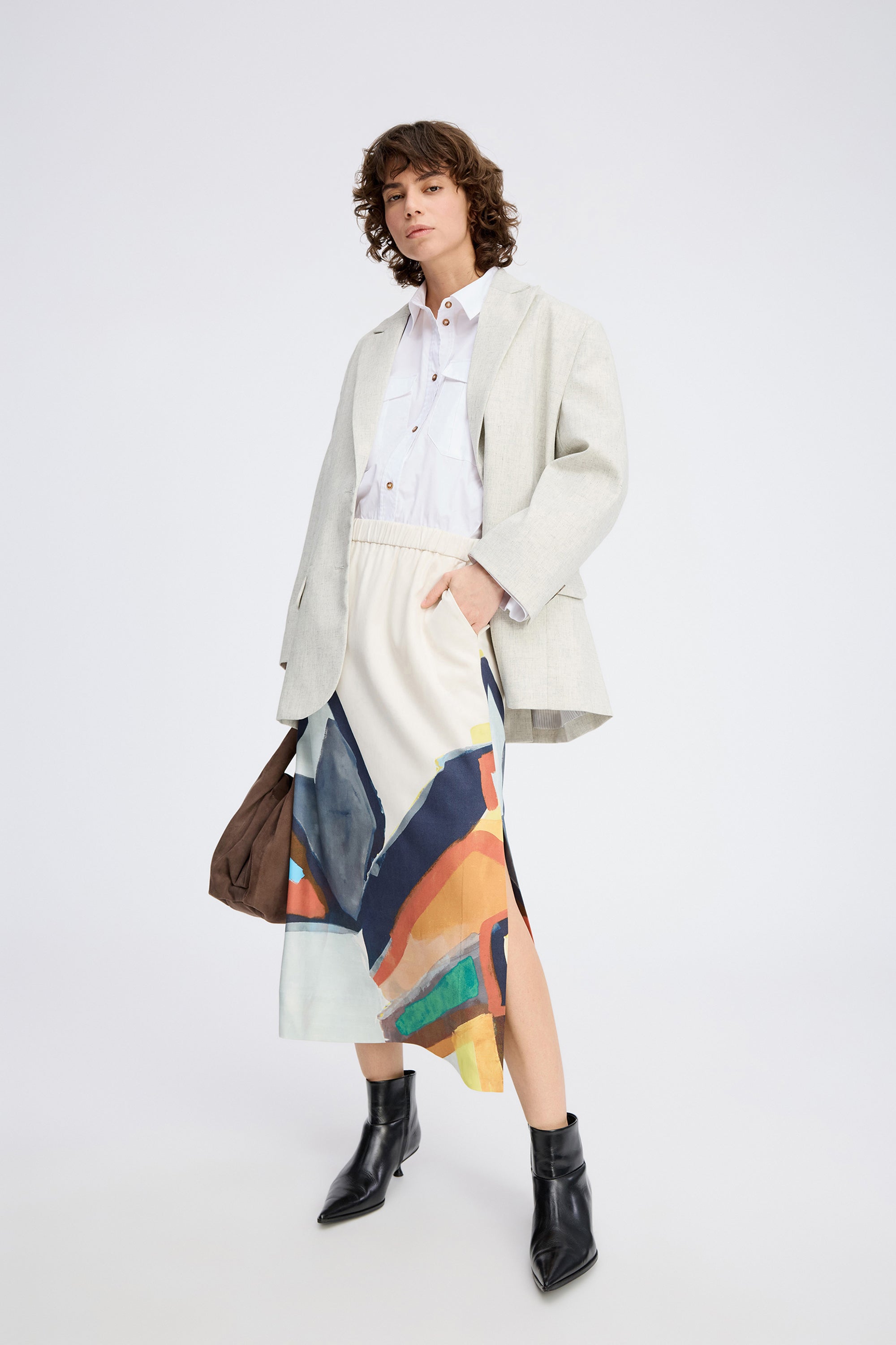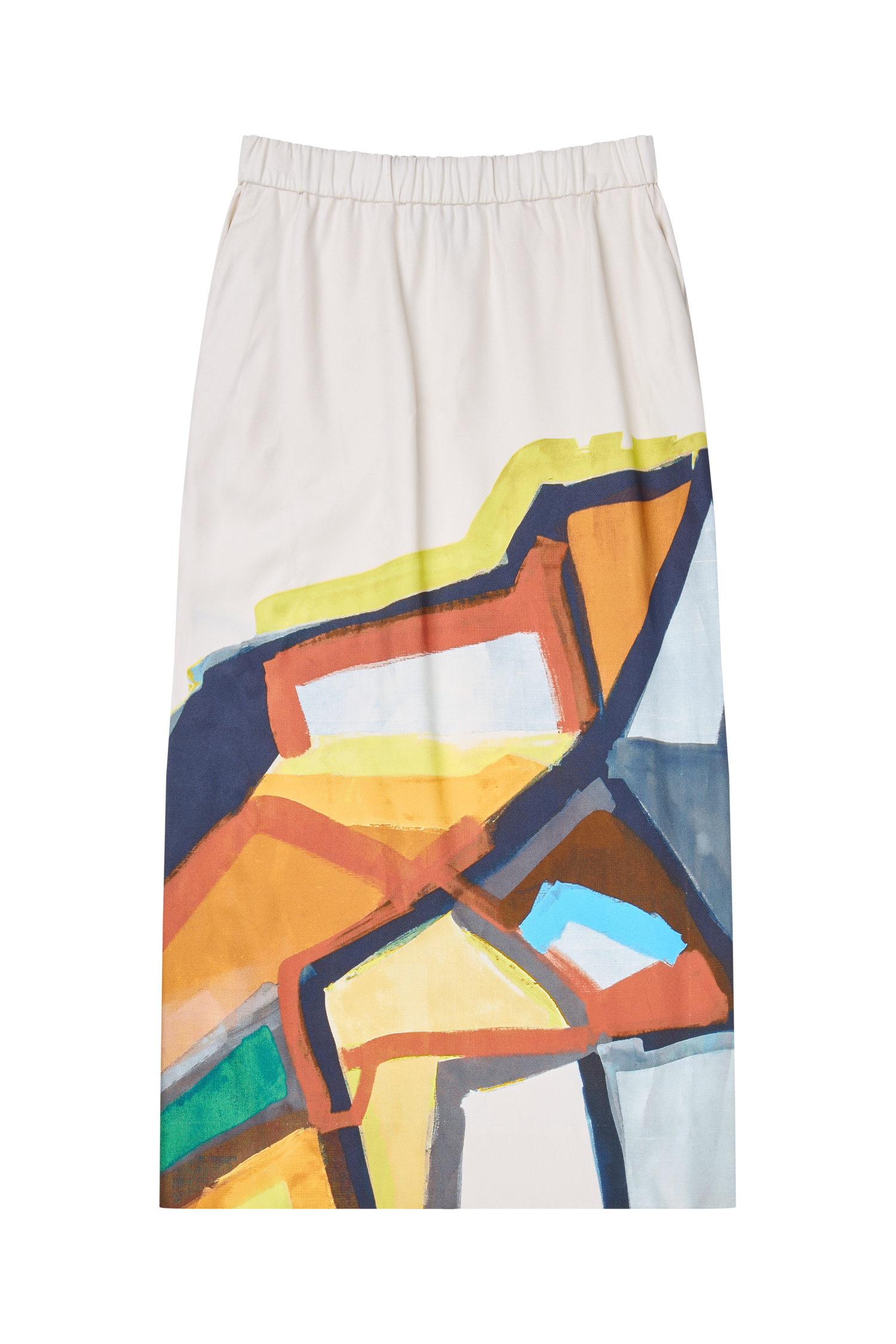 Schöner Rock mit elegantem, abstraktem Grafikprint. Mit elastischem Bund, Schlitz und stylischen Seitentaschen gestaltet.
