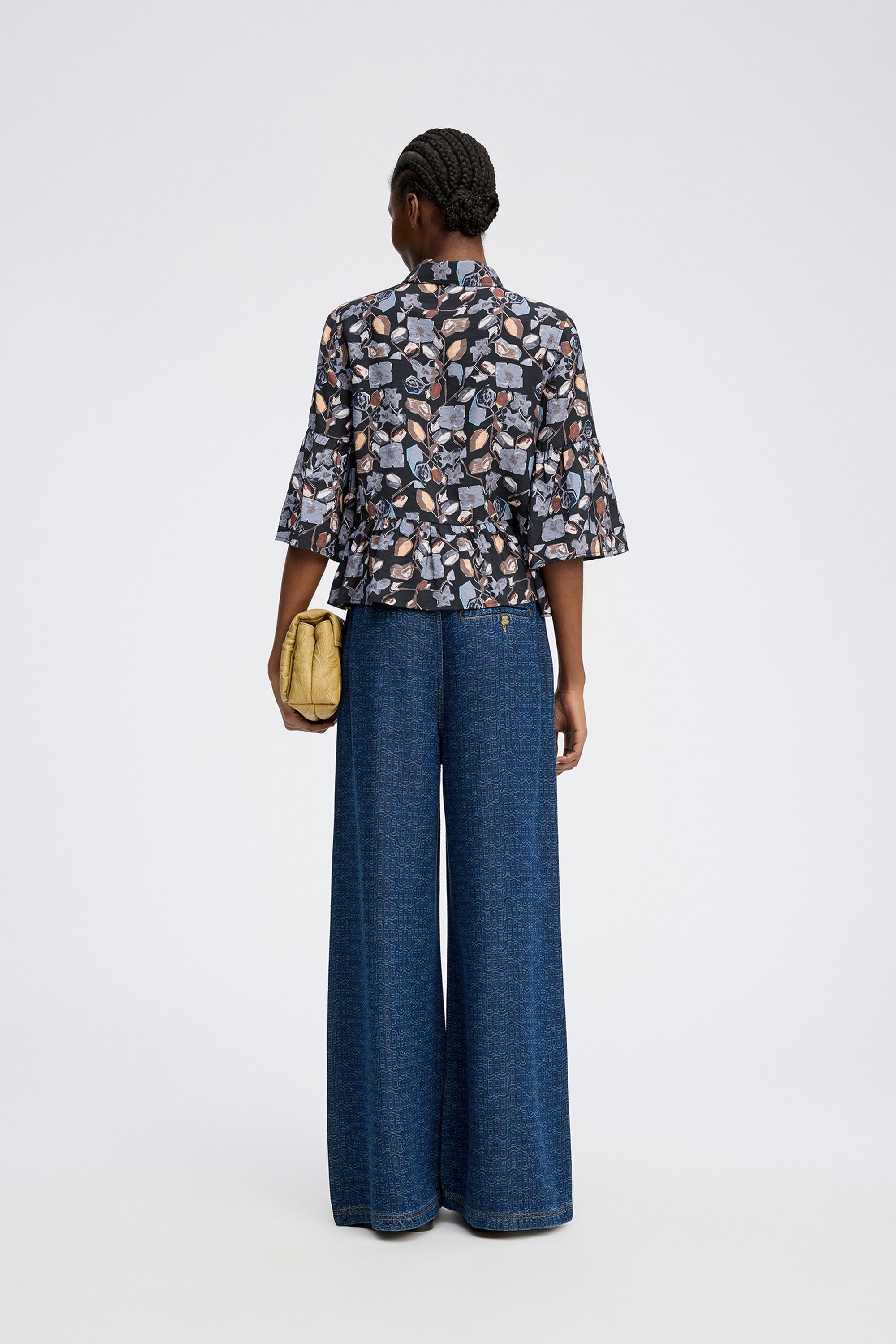 Feminine Hemdbluse mit schönem Blumenprint. Mit klassischem Kragen, weiten 3/4-Ärmeln und einer eleganten, taillierten Passform mit Schößchen. Die Bluse ist bis zur Mitte geknöpft.
