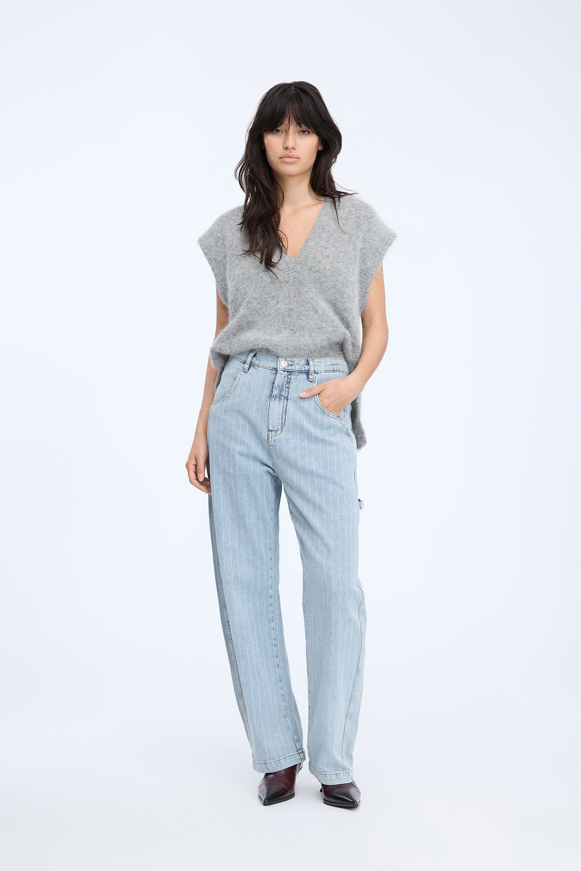 Denim-Hose mit eleganten Nadelstreifen, übergroßen Gesäßtaschen und von Cargohosen inspirierten Details. Die Hose ist aus 100% Bio-Baumwolle gefertigt.