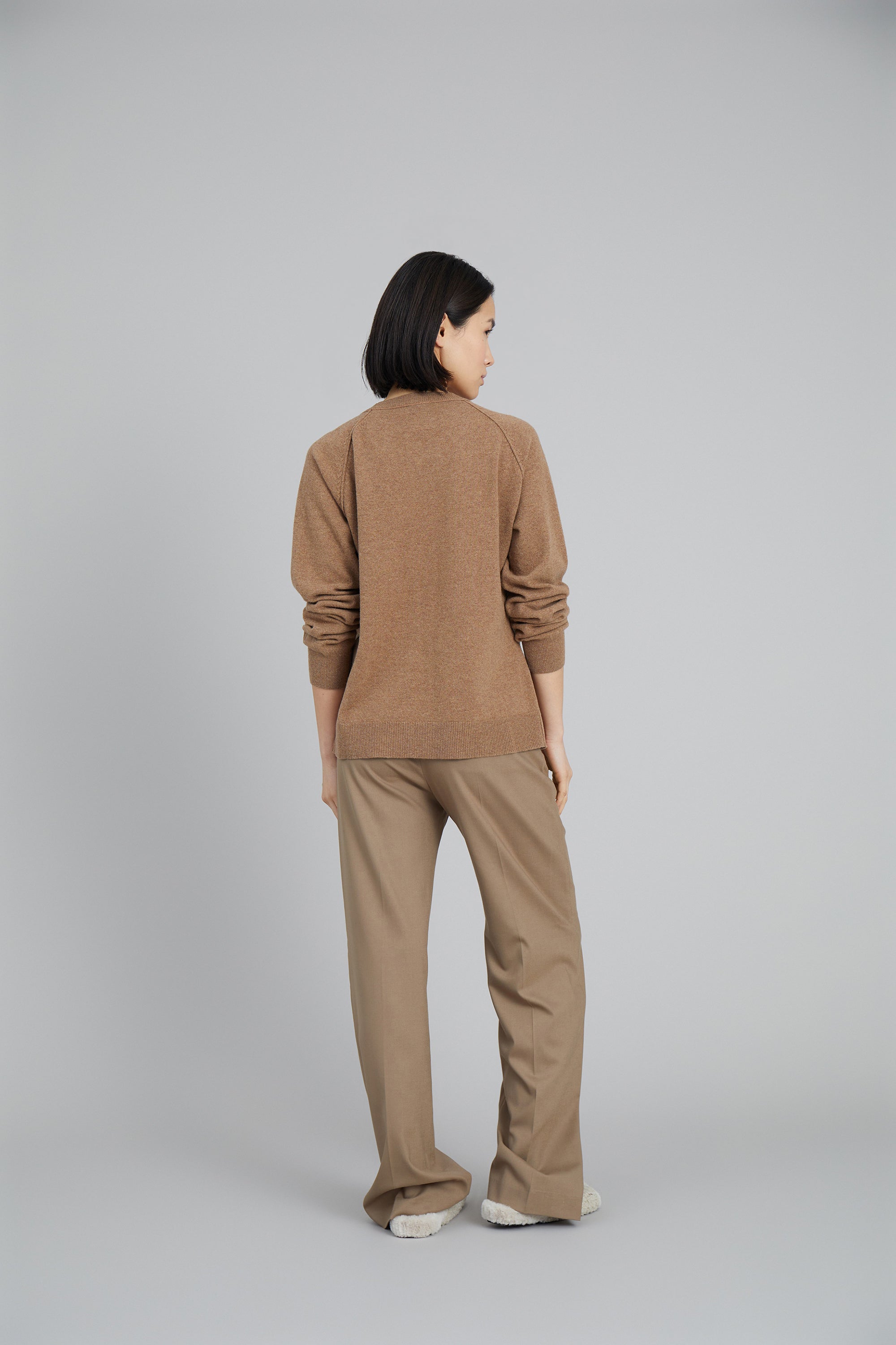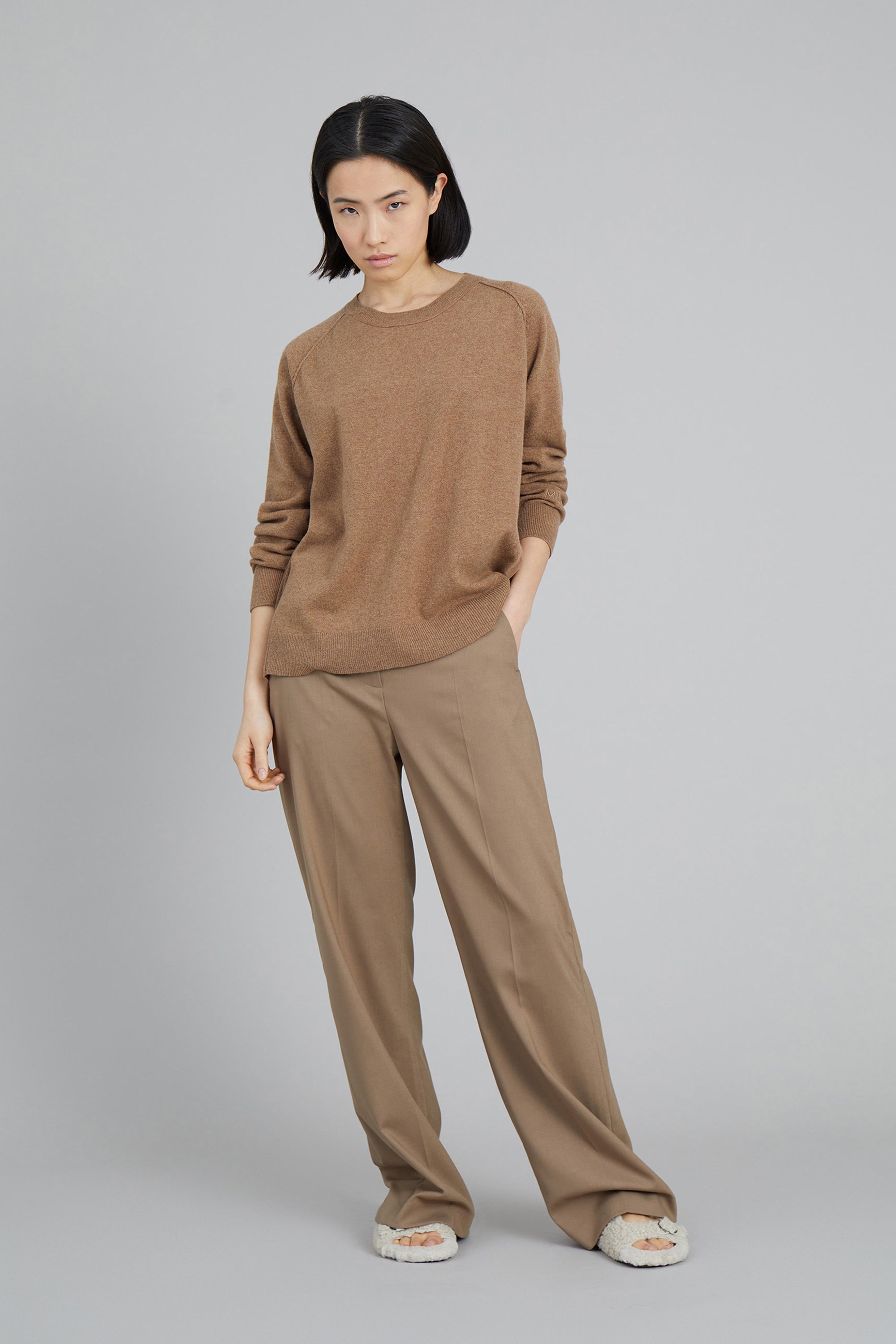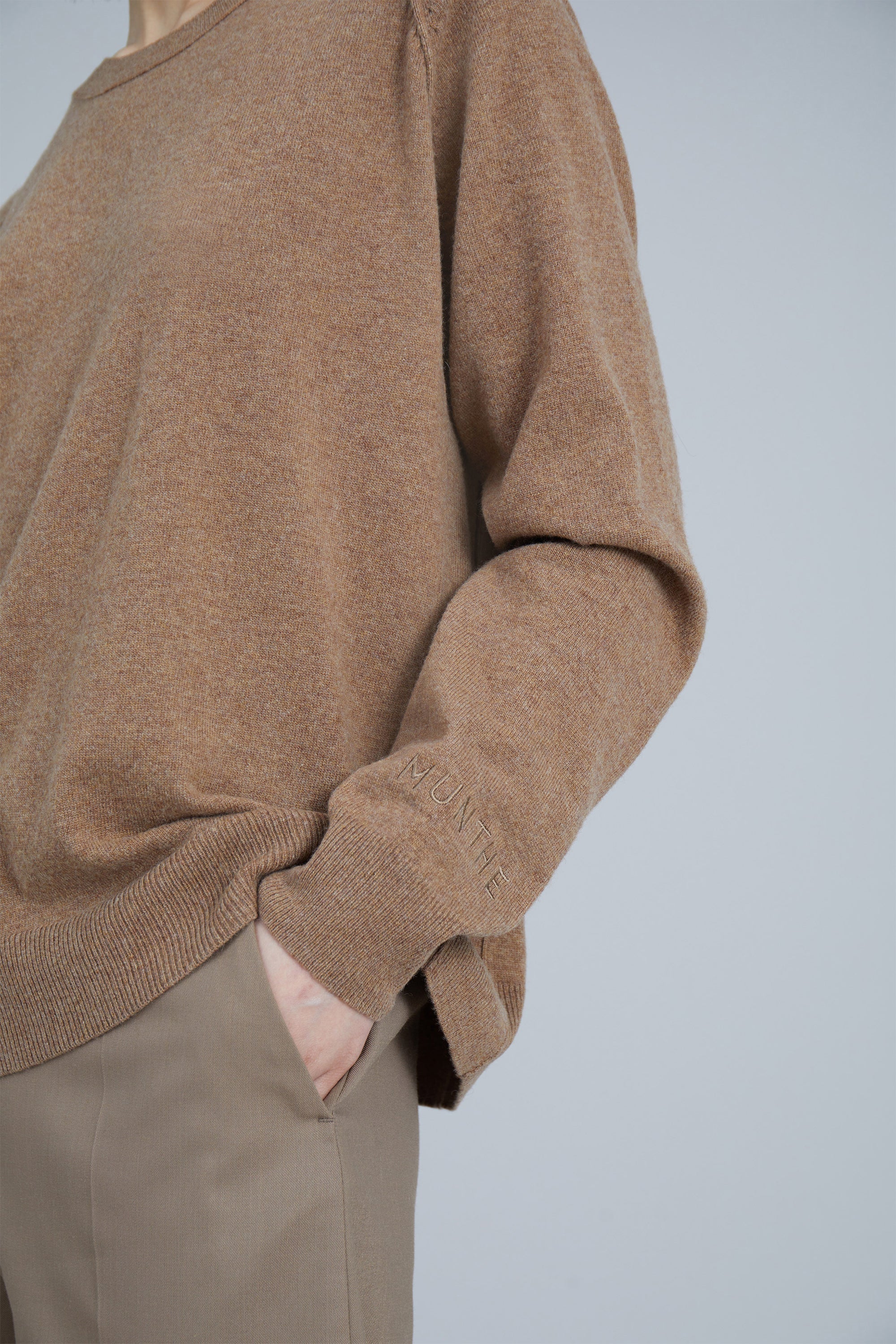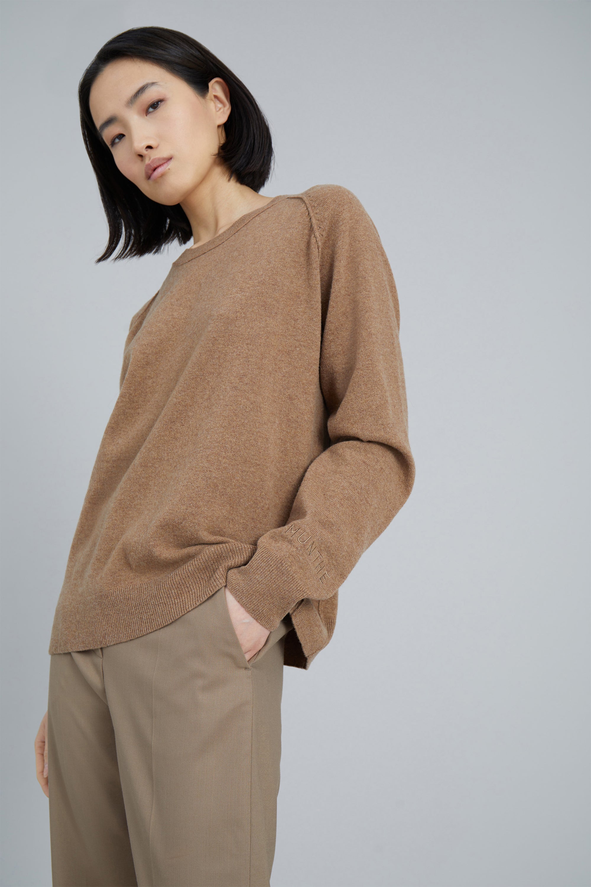 Wunderschönes Strickstück aus einer feinen Woll-Kaschmir-Mischung. Der Pullover hat eine Rippung entlang des Rundhalsausschnitts, an den Handgelenken und am Saum sowie einen kleinen Schlitz an den Seiten. Erhältlich in Grau, Creme, Camel und Anthrazit.